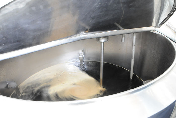 搾った生揚醤油に熱を加えます。微生物を失活させて、色を調えて醤油独特の香りづけをします。火香(ひが)をつけるともいわれ、これも職人の技術を要します。