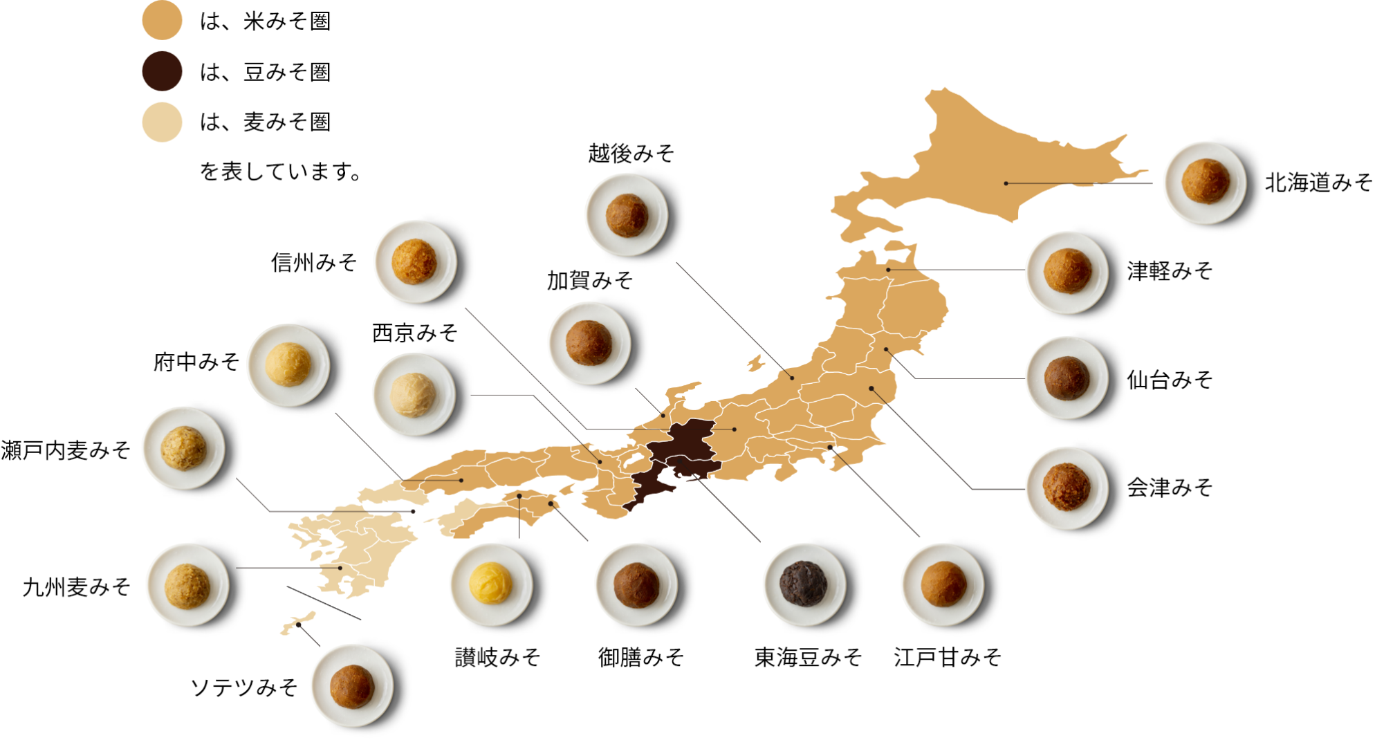 熊本県は肥後みそ、鹿児島県は薩摩みそなど今でも藩の名称で呼ばれているみそが多くあります。