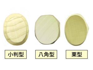 和包丁の柄の形は一般的に「小判型」・「八角型」・「栗型」の3種類があります。柄尻を立てて断面を見てみると分かりやすいでしょう。